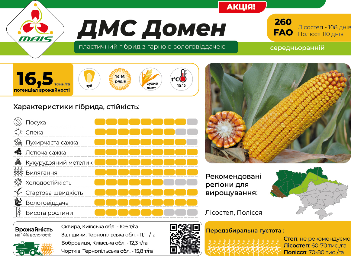 | Сорт/Гібрид | ДМС Домен |