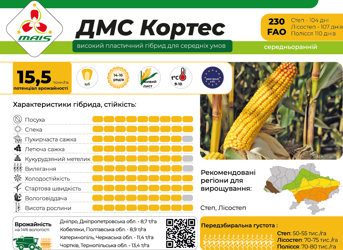 | Сорт/Гібрид | ДМС Кортес |